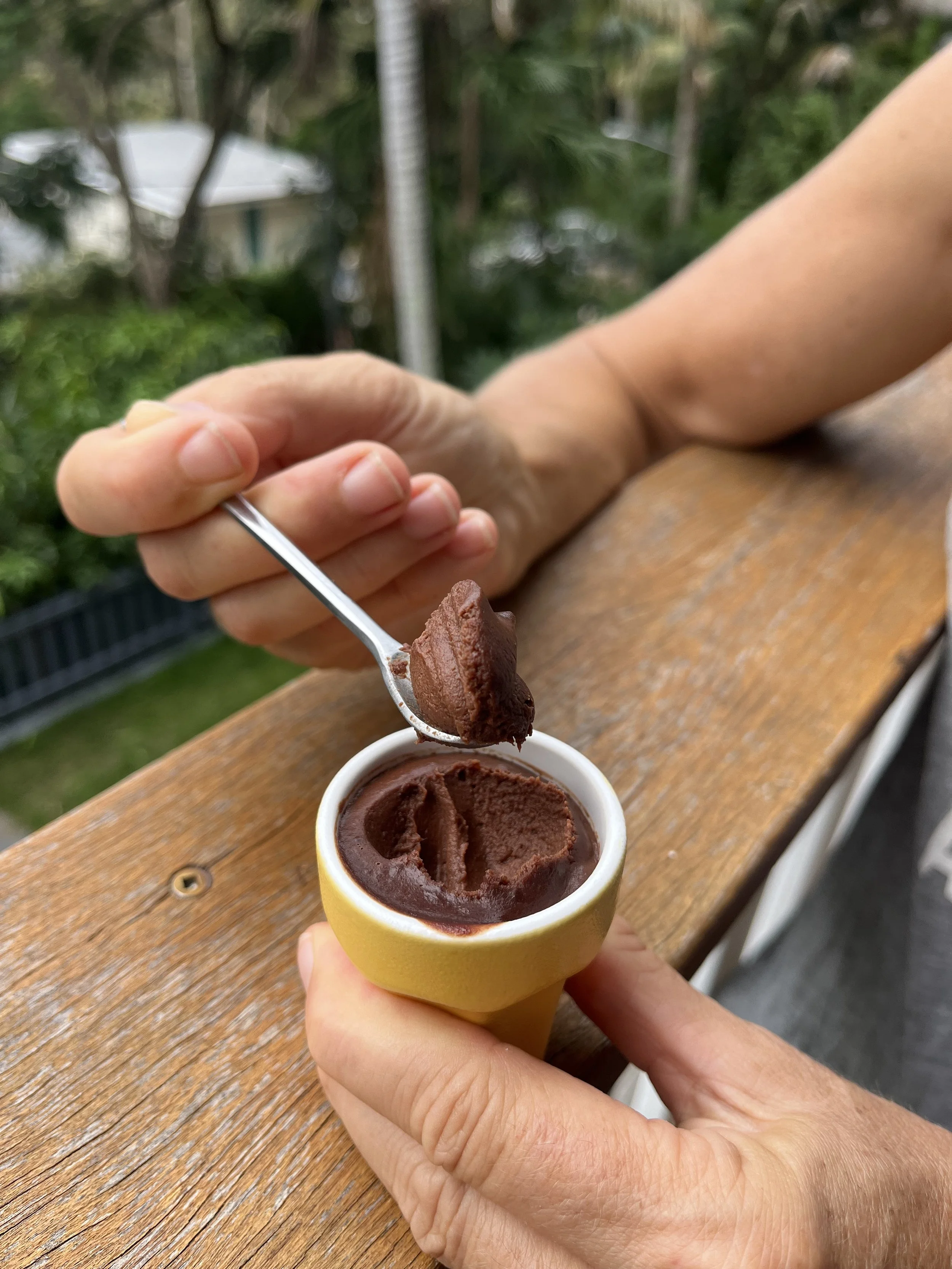 place dates and choc in a bowl, pouring boiling water over top (add pinch salt) and let sit ten minutes