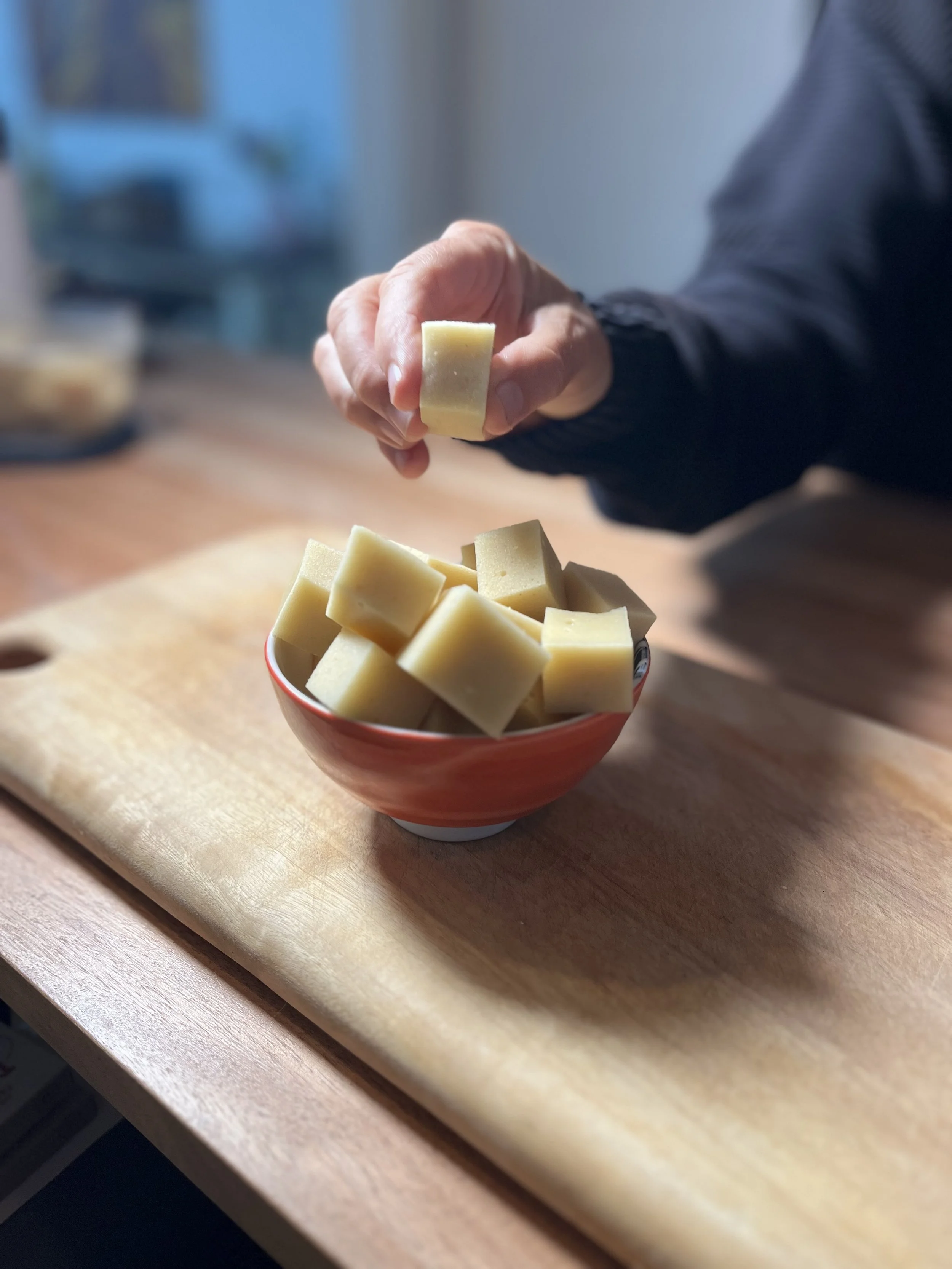 Pour into parchment lined tin and refrigerate
